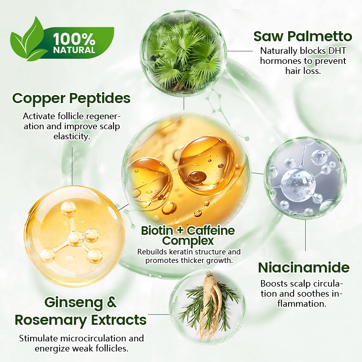 Copper Peptides – Activate follicle regeneration and improve scalp elasticity.